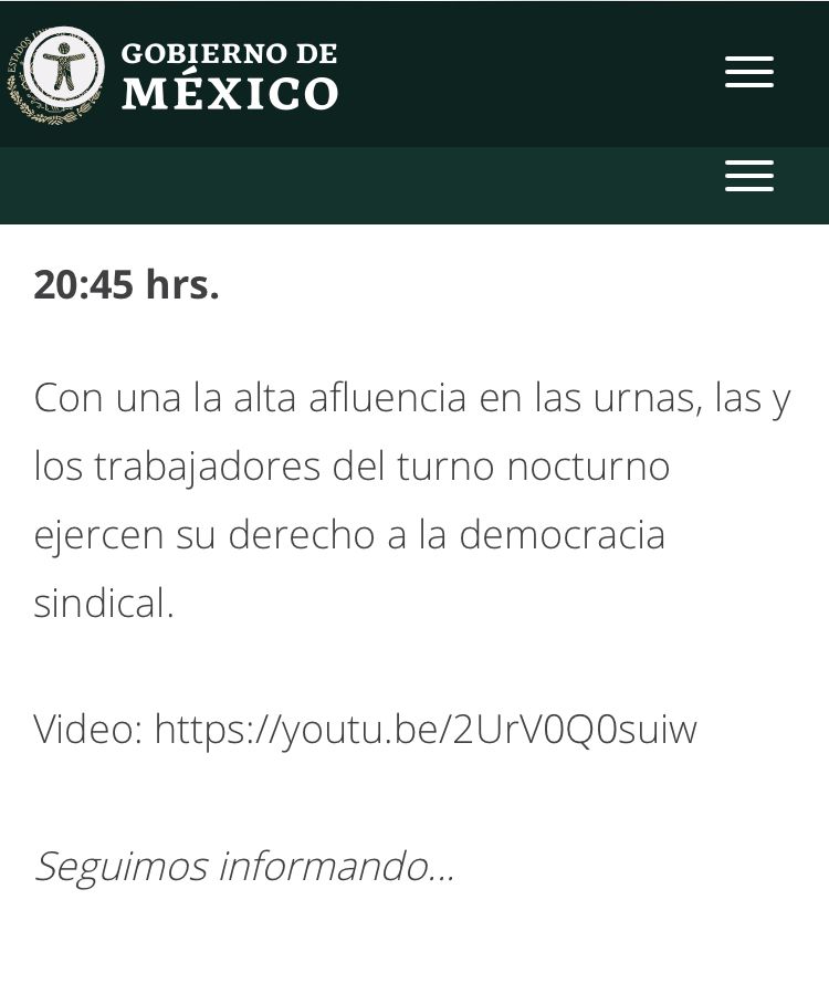 Por último, cabe señalar que en el sistema donde se puede consultar el proceso de legitimación, https://www.gob.mx/stps/es/articulos/proceso-de-consulta-para-la-legitimacion-del-contrato-colectivo-de-trabajo-de-general-motors-silao?idiom=es se puede apreciar como la STPS indica que hay un gran número de votantes, pero de medidas de prevención y atención a la salud no hay menciones.